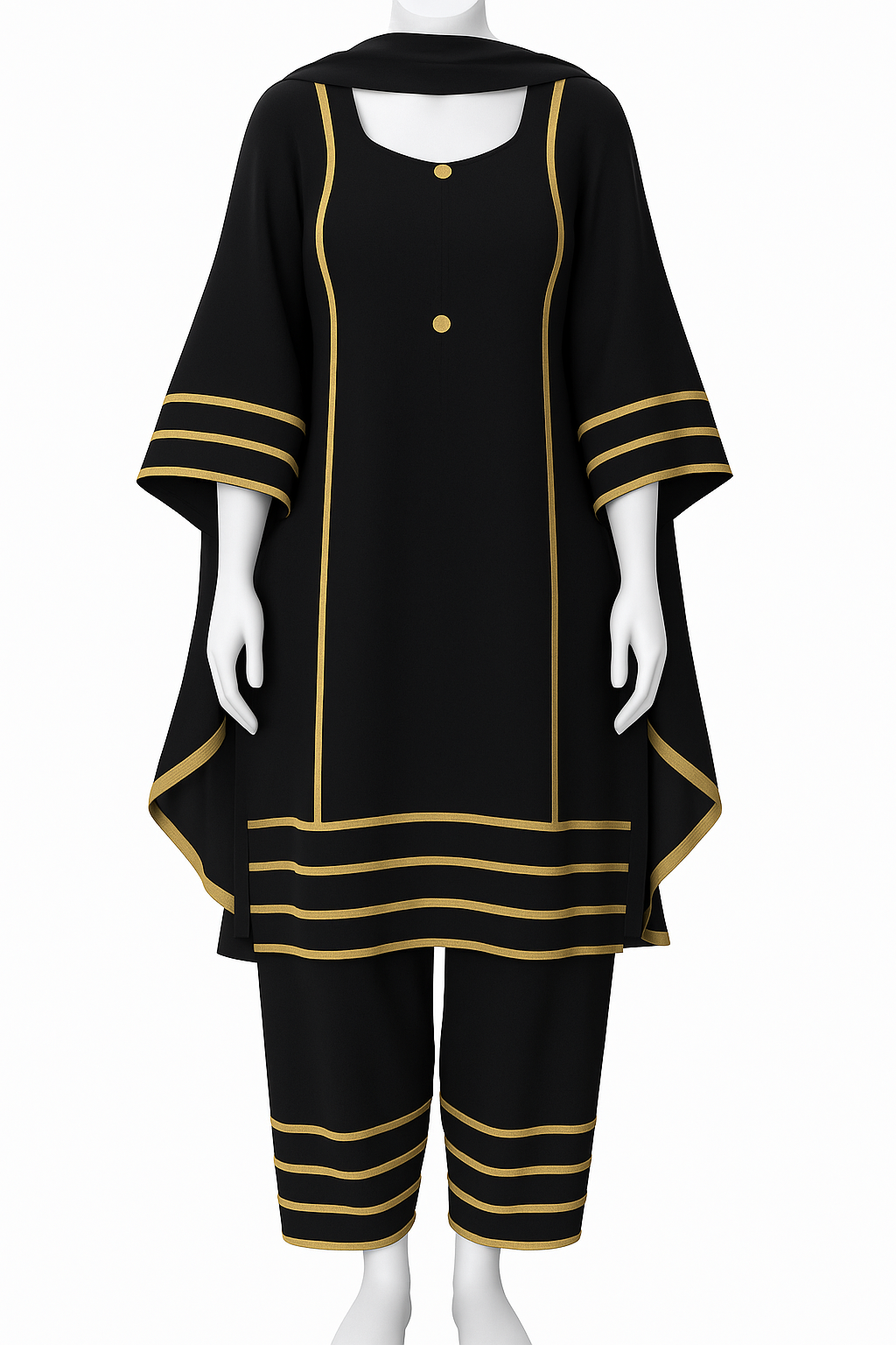 Elegant Black & Gold Lined Kurti Set | Mehlish Fashion – Premium Hand-Stitched Design