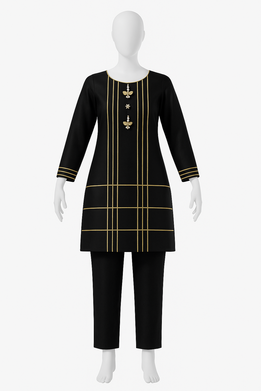 Elegant Black Tunic with Golden Stitch Detailing | Mehlish Fashion Brand