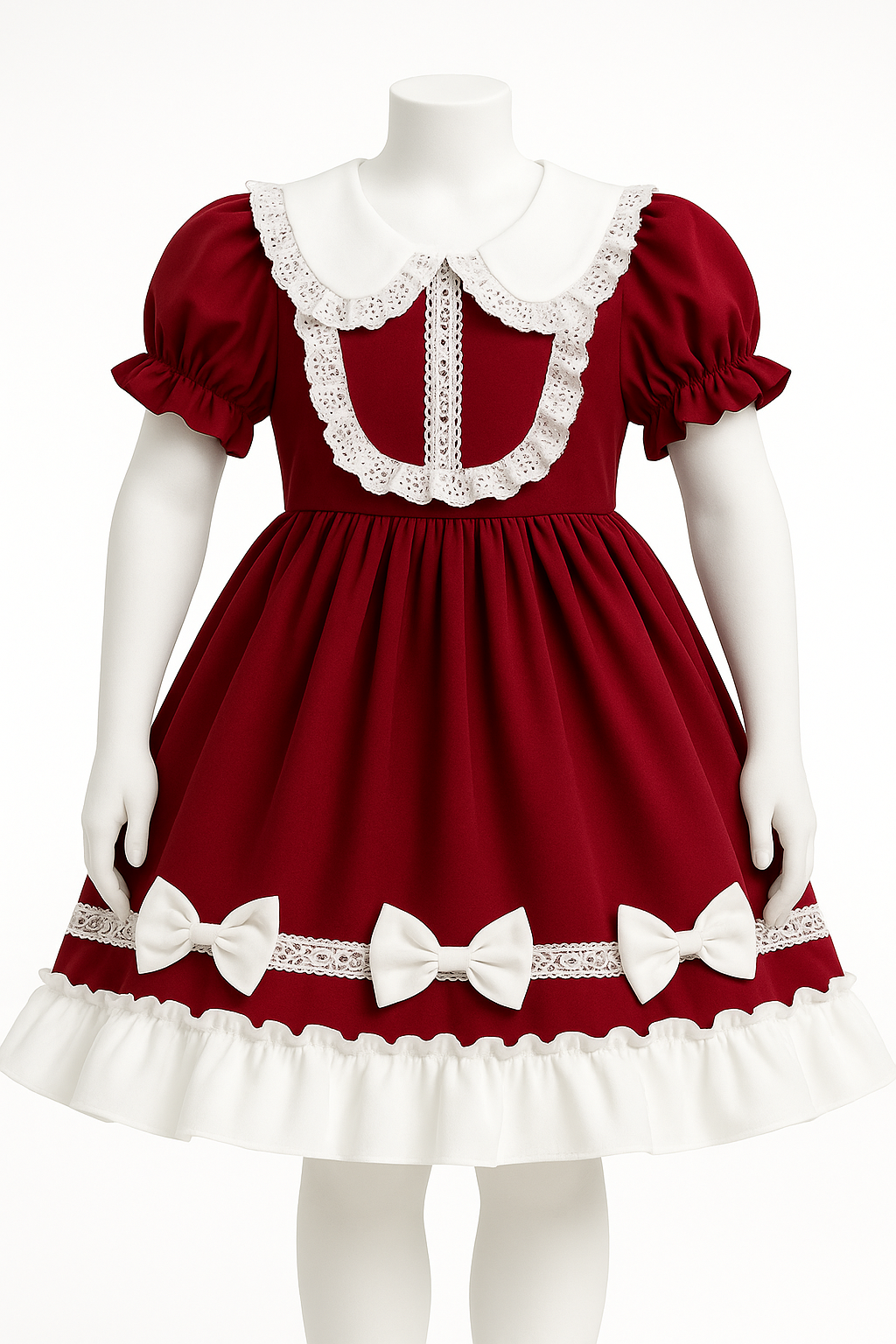 Vintage Maroon & White Lace Stitch Dress | Classic Bow Design by Mehlish Fashion Brand