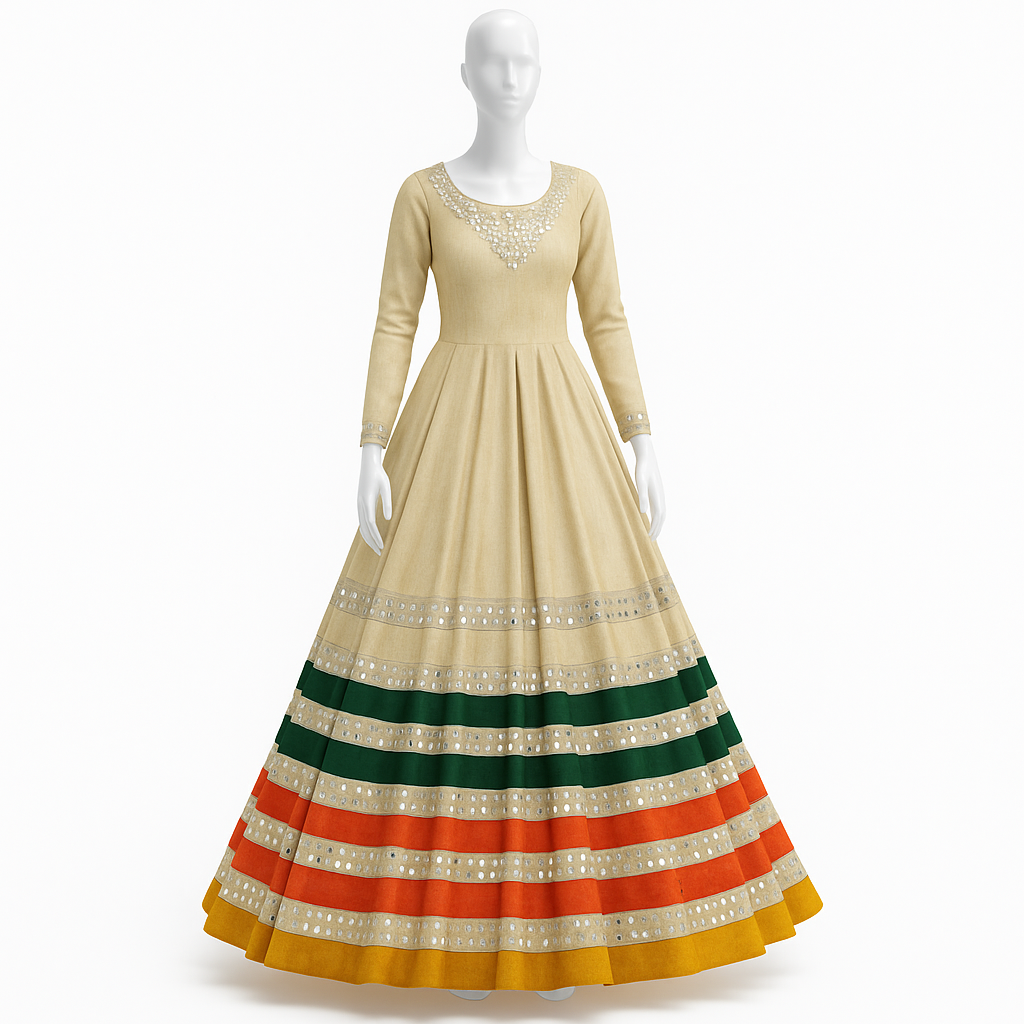 Golden Multi-Color Mirror Work Anarkali Dress with Fine Stitch Detailing | Mehlish Fashion Brand - Buy Now