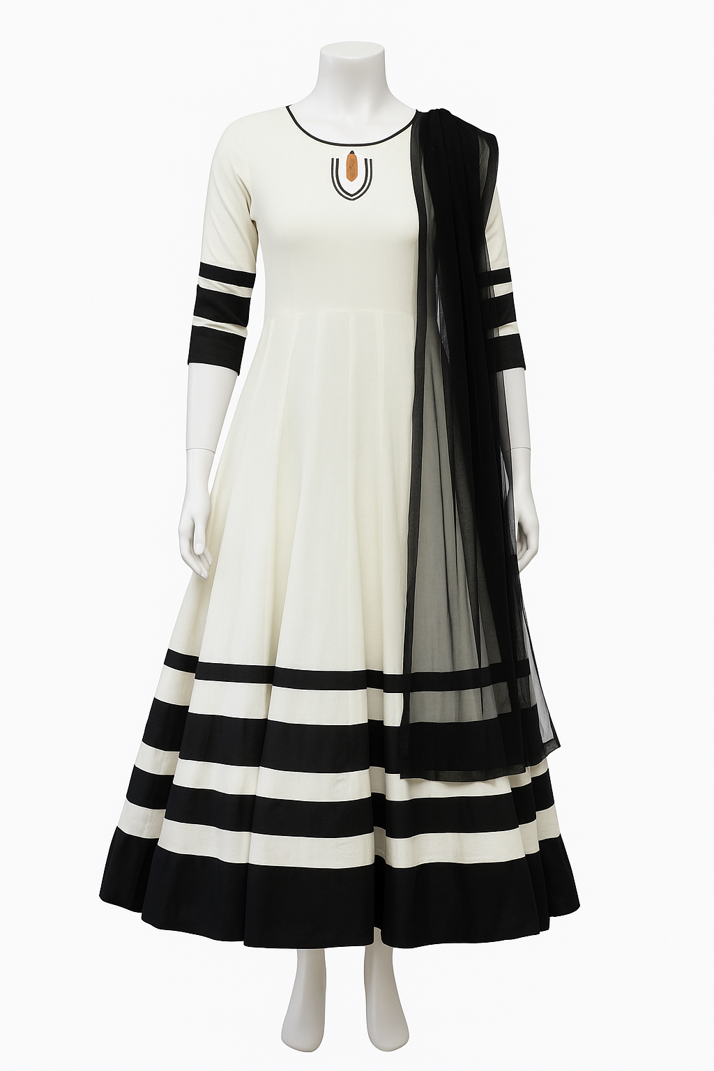 Elegant Black & White Anarkali Dress with Premium Stitch Detailing | Mehlish Fashion Brand - Buy Now