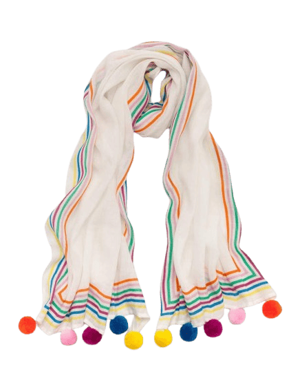White Cotton Dupatta with Multicolor Stripe Stitch & Pom Pom Border – Vibrant Festive Style by Mehlish Fashion Brand - Buy Now