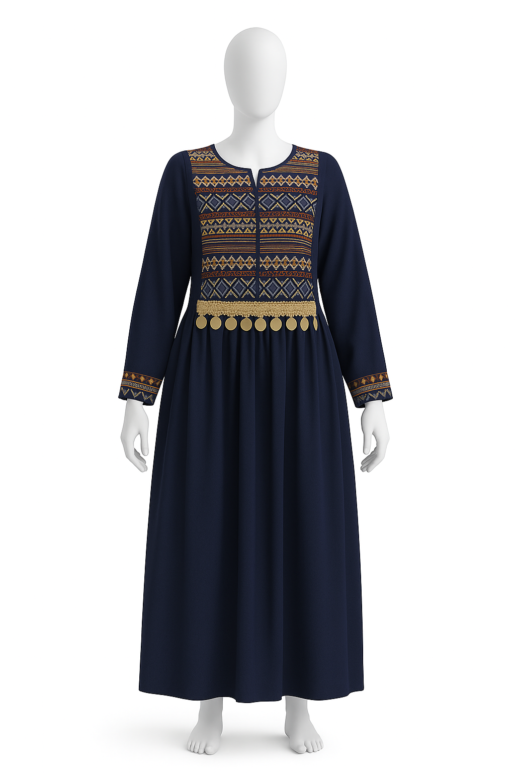 Navy Blue Ethnic Embroidered Maxi Dress with Geometric Stitch Detailing – Mehlish Fashion Brand - Buy Now