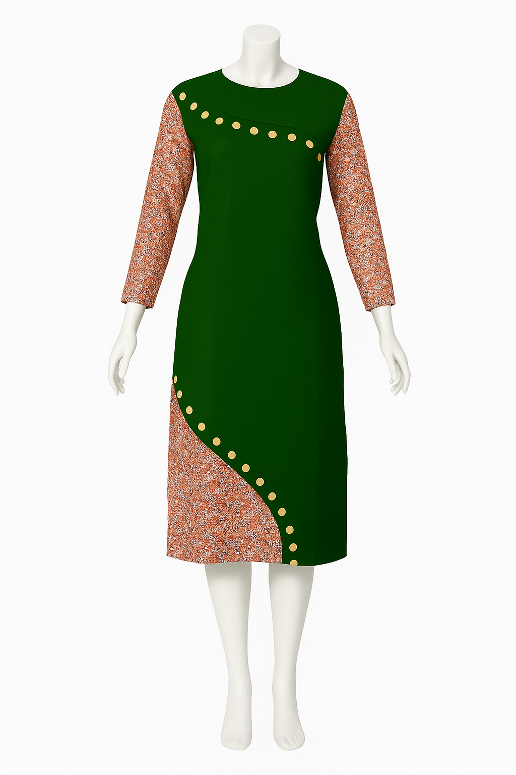 “Dual Fabric Green Kurti with Side Panel Detailing – Elegant Stitch Art by Mehlish Fashion”