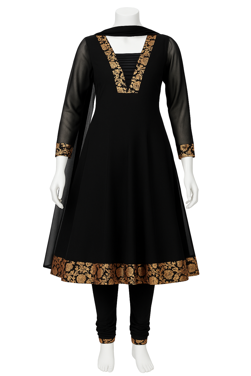 Black & Golden Anarkali Dress with Premium Stitching and Embroidered Borders | Mehlish Fashion Brand