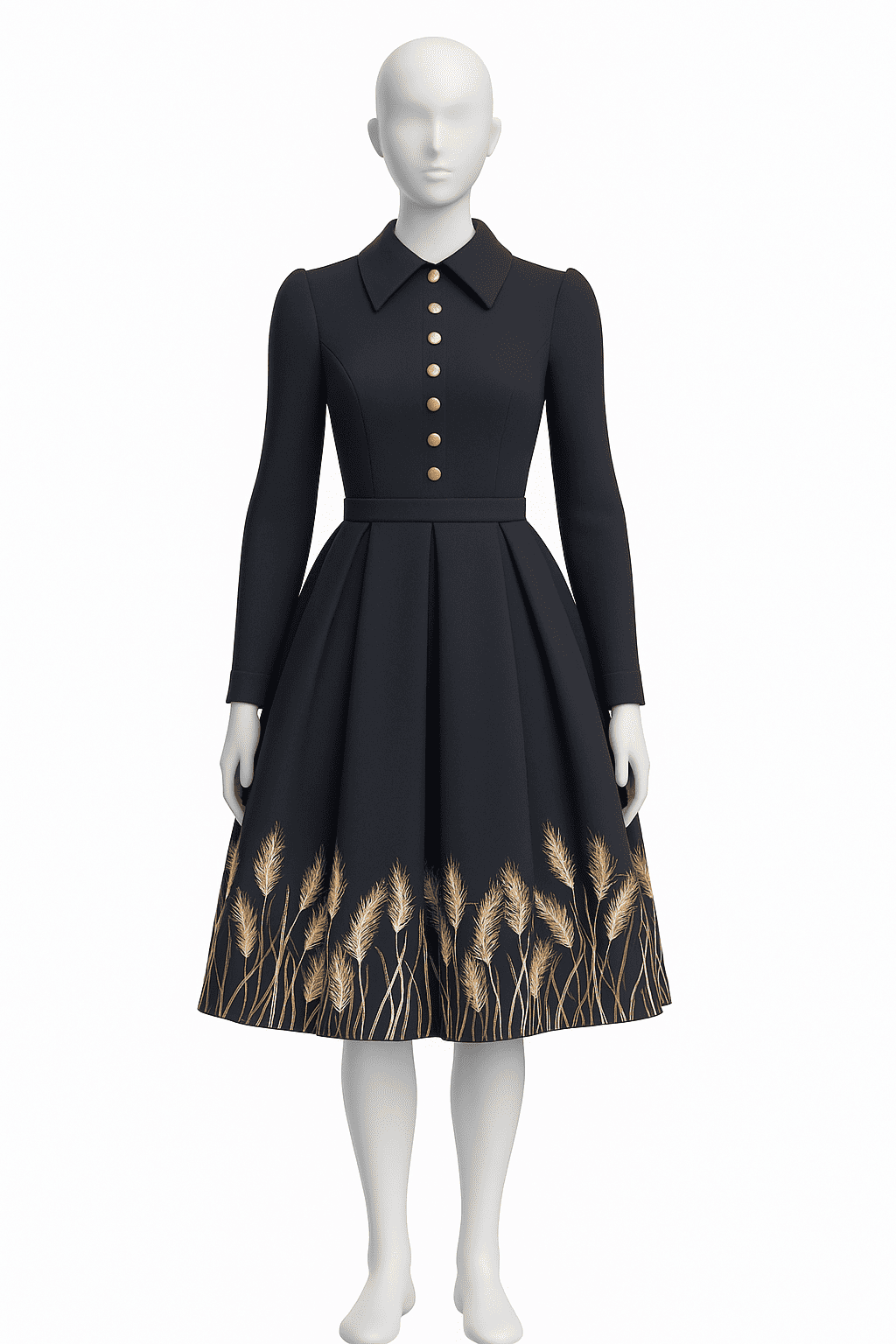 Elegant Navy Blue Embroidered Dress with Golden Wheat Stitching | Mehlish Fashion Brand - Product Details