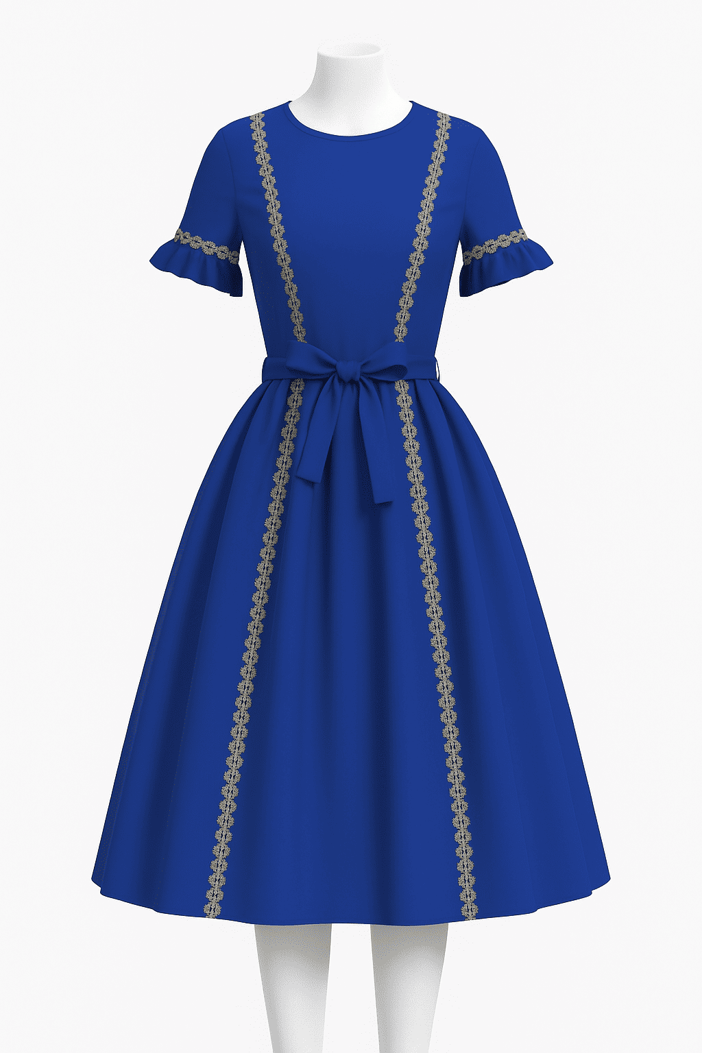 Royal Blue Elegant Lace-Stitched Midi Dress | Mehlish Fashion Brand - Product Details