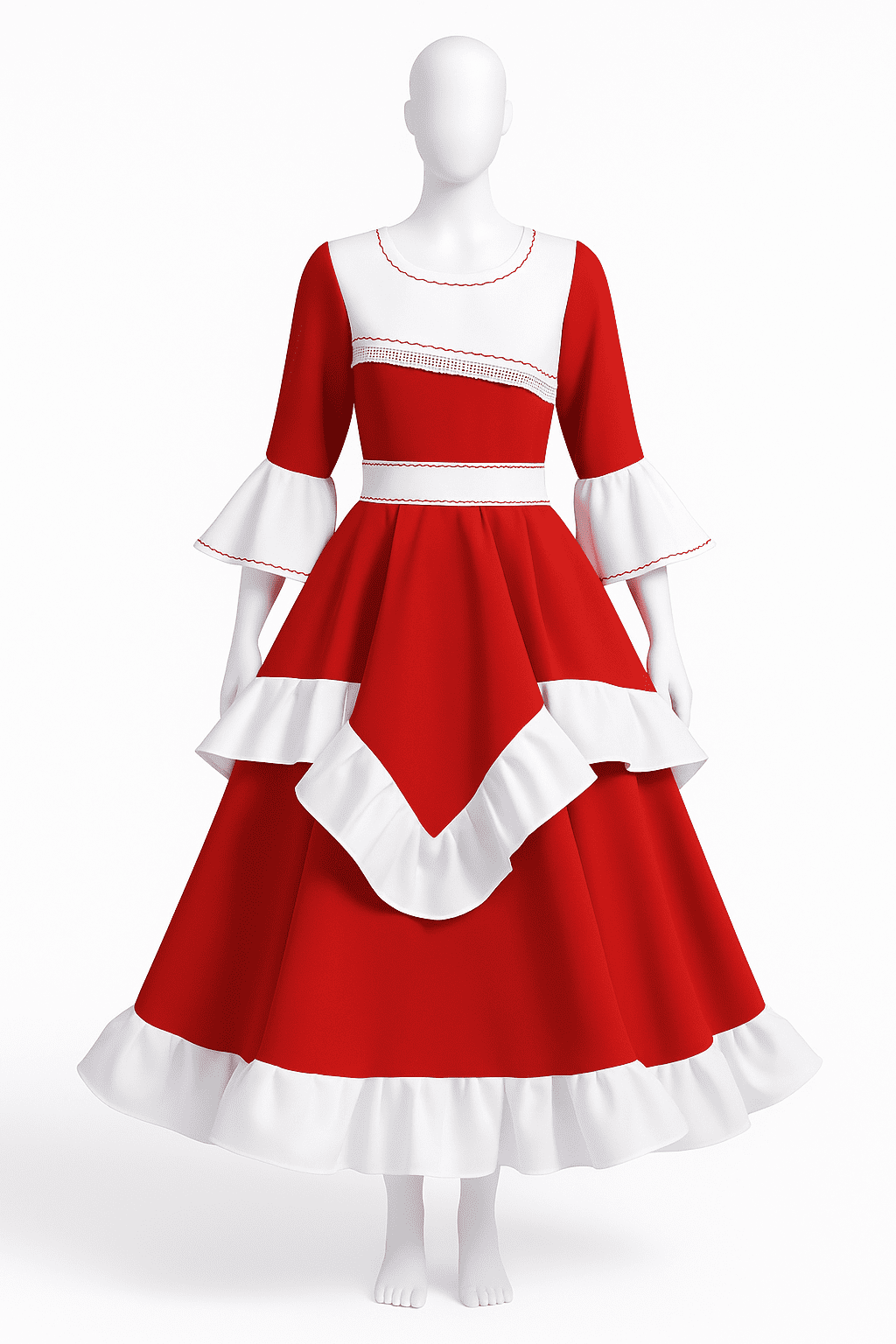 Elegant Red & White Layered Frock with Decorative Stitch Detailing | Mehlish Fashion Brand - Buy Now